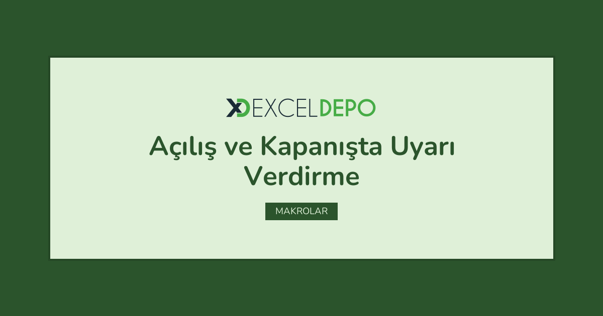 Açılış ve Kapanışta Uyarı Verdirme işleminin nasıl yapılacağını öğreten bir Excel dosyası vardır.