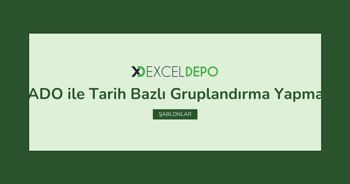 ADO ile Tarih Bazlı Gruplandırma Yapma işleminin nasıl yapılacağını öğreten bir Excel dosyasıdır.