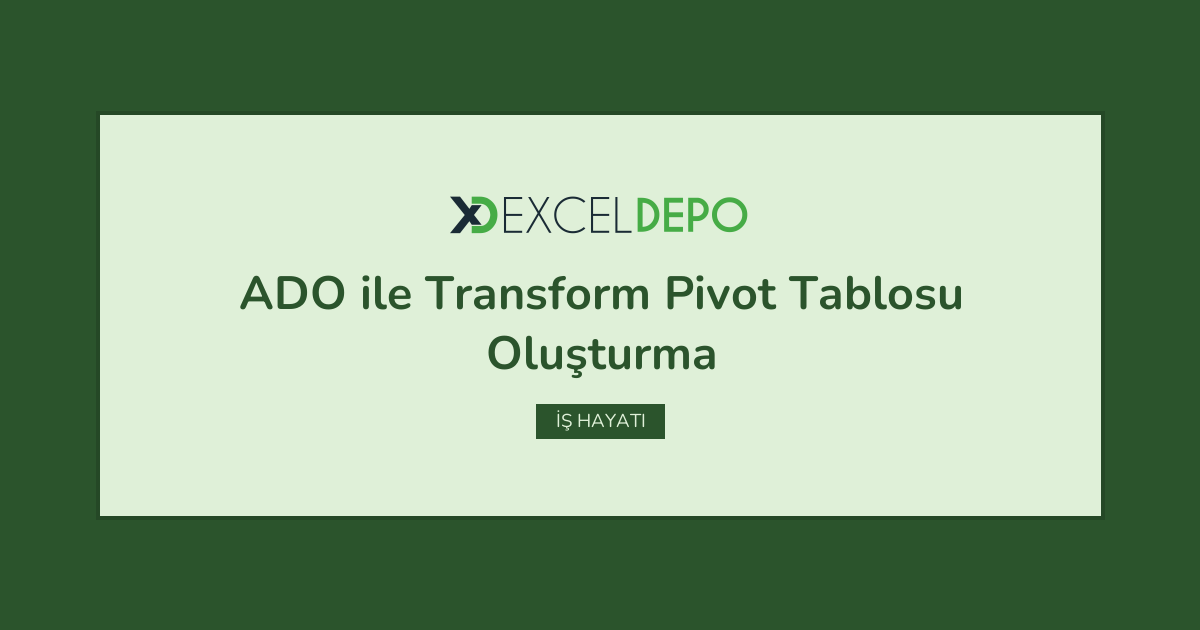 ADO ile Transform Pivot Tablosu Oluşturma işleminin nasıl yapılacağını öğreten bir Excel dosyasıdır.