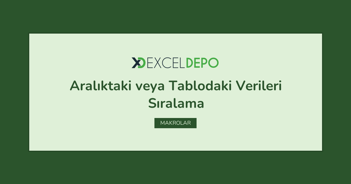 Excel Destekli Aralıktaki veya Tablodaki Verileri Sıralama