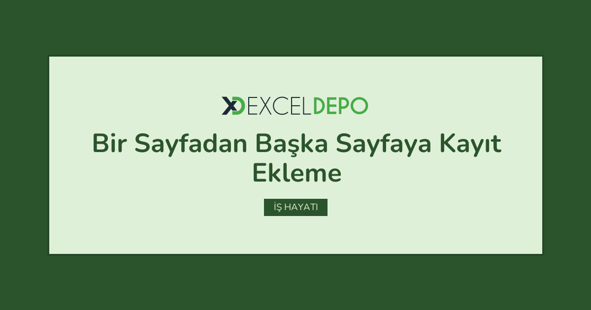 Excel Destekli Bir Sayfadan Başka Sayfaya Kayıt Ekleme