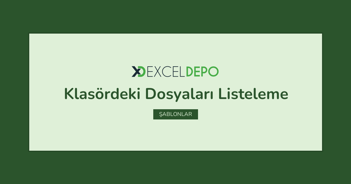 Klasördeki Dosyaları Listeleme işleminin nasıl yapılacağını öğreten bir Excel dosyası bulunmaktadır.