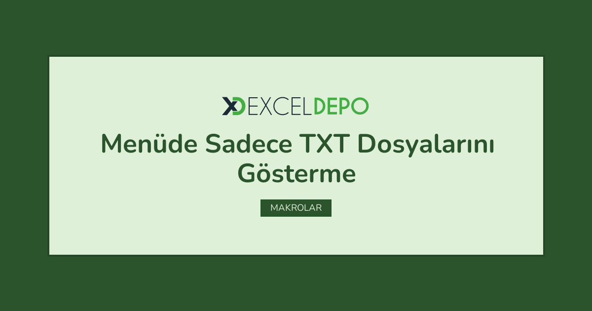 Menüde Sadece TXT Dosyalarını Gösterme işleminin nasıl yapılacağını öğreten bir Excel dosyasıdır.