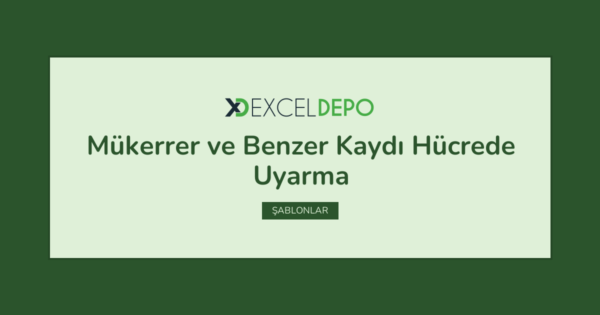 Mükerrer ve Benzer Kaydı Hücrede Uyarma işleminin nasıl yapılacağını öğreten bir Excel dosyasıdır.