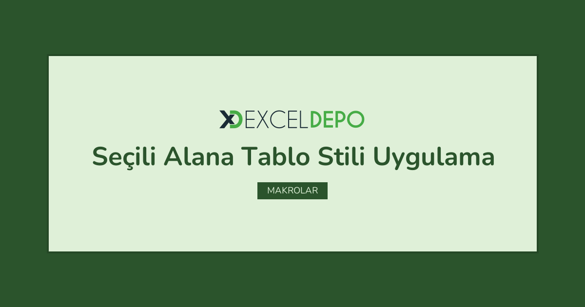 Excel Üzerinde Seçili Alana Tablo Stili Uygulama