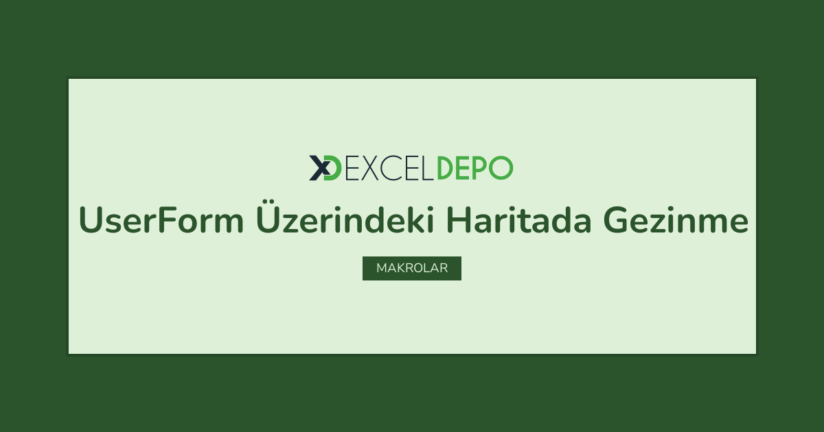 UserForm Üzerindeki Haritada Gezinme işleminin nasıl yapılacağını öğreten bir Excel dosyası vardır.