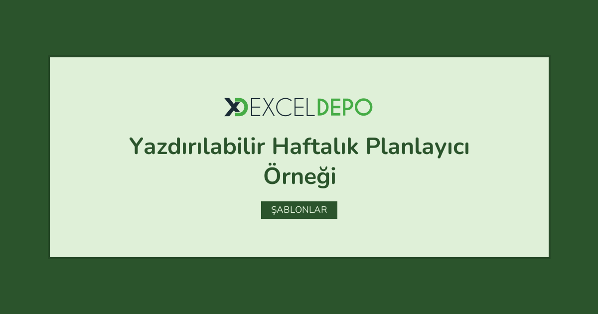 Excel Destekli Yazdırılabilir Haftalık Planlayıcı Örneği