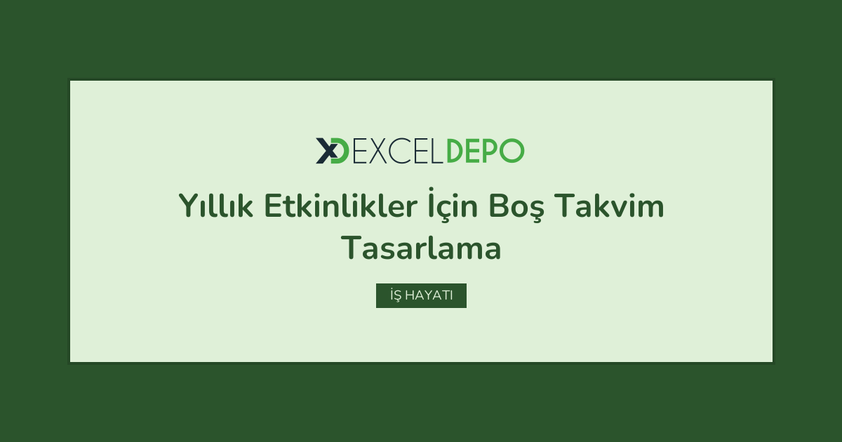 Yıllık Etkinlikler İçin Boş Takvim Tasarlama işleminin nasıl yapılacağını öğreten Excel dosyasıdır.
