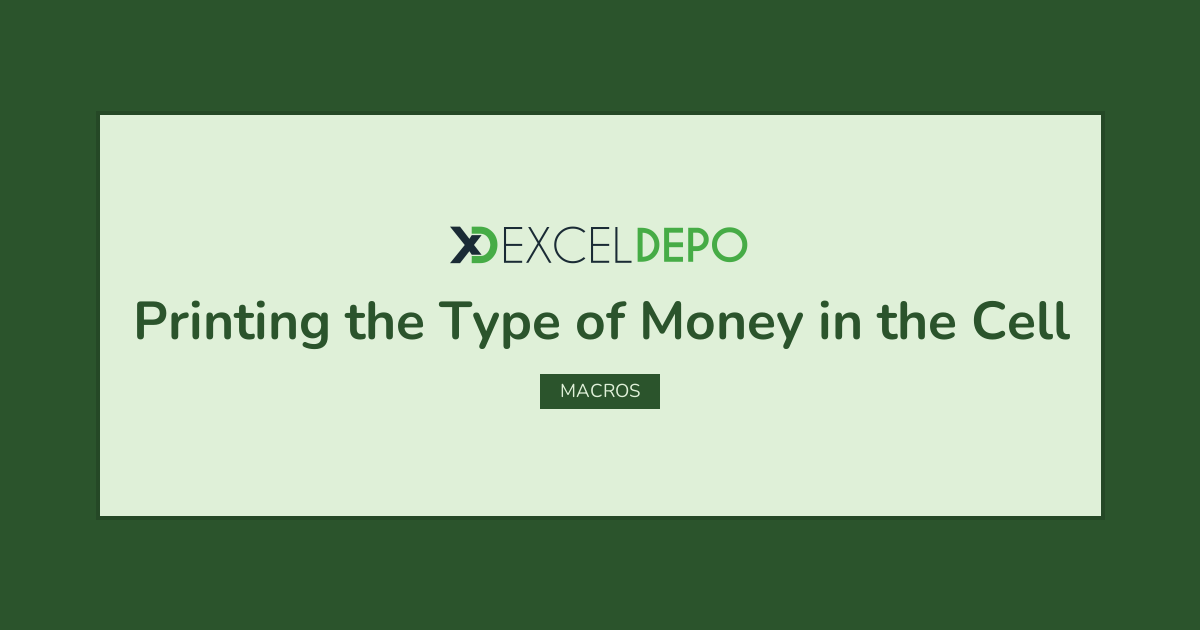 Excel Printing the Type of Money in the Cell