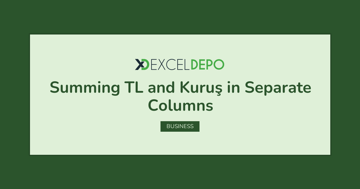 An Excel file that teaches how to perform Summing TL and Kuruş in Separate Columns operation.